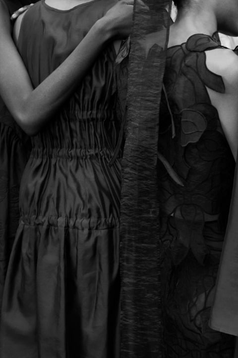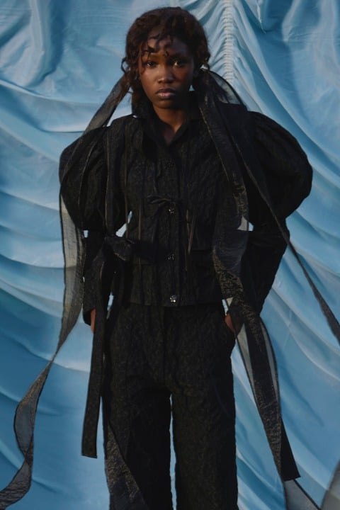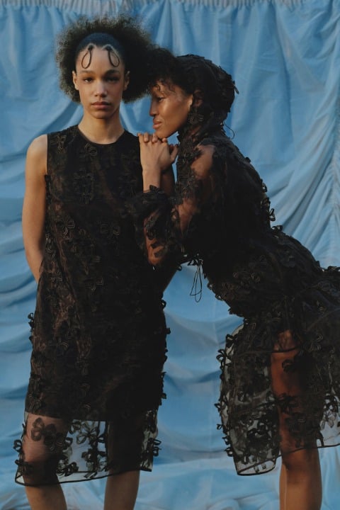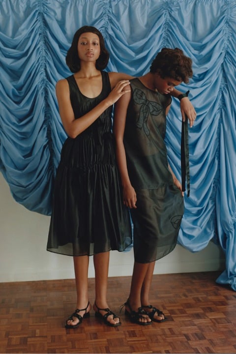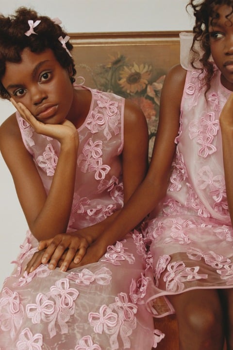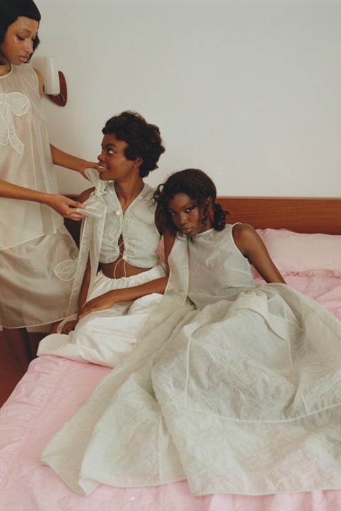 Nadine Ijewere’in kadraja aldığı, kız kardeşlik ve giyinme temalı lookbook kareleri, hayatta en ihtiyacımız olan kavramlardan birine oldukça profesyonel bir noktadan odaklanıyor. Koleksiyona daha yakından baktığımızda ise fiyonkların farklı formlarda birçok tasarımda anahtar görevi gördüğünü anlıyoruz. Tıpkı arkadaşlık gibi. Hacimli formlarda ve siyah, beyaz, pembe gibi renklerde hayat bulan tasarımlarda fiyonk detayı odakta. Bu fiyonklara bazen sırtta, bazen kollarda, bazen ise kelimenin tam anlamıyla her yerde rastlıyoruz. Romantik kişilikli tasarımlar, sezonun dünyasını dopaminle eşleştirirken zamansızlığı elden bırakmıyor.