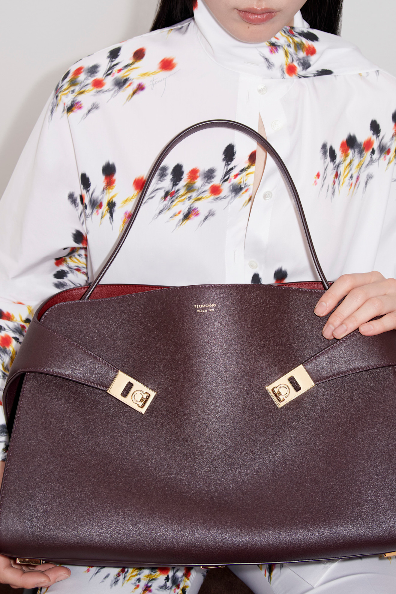 Minimalizmin en sıcak hali. Çantayı yanlardan kucaklayan meşhur Gancini tokaları, Ferragamo’nun ustalığını kusursuzca sergiliyor. Çeşitli deri dokuları ve renklerle birleşen Hug modeli, kilitleri serbest bırakıldığında bile formunu koruyan ama tavrını esneten bir yapıya sahip.