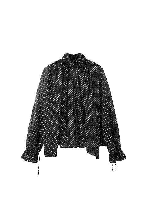 Puantiye Desenli Yüksek Yakalı Bluz