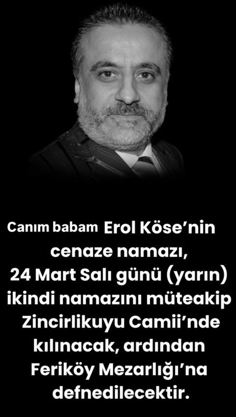 Erol Köse bugün Zincirlikuyu Camii’nde kılınacak ikindi namazına müteakiben Feriköy Mezarlığı’nda toprağa verilecek.