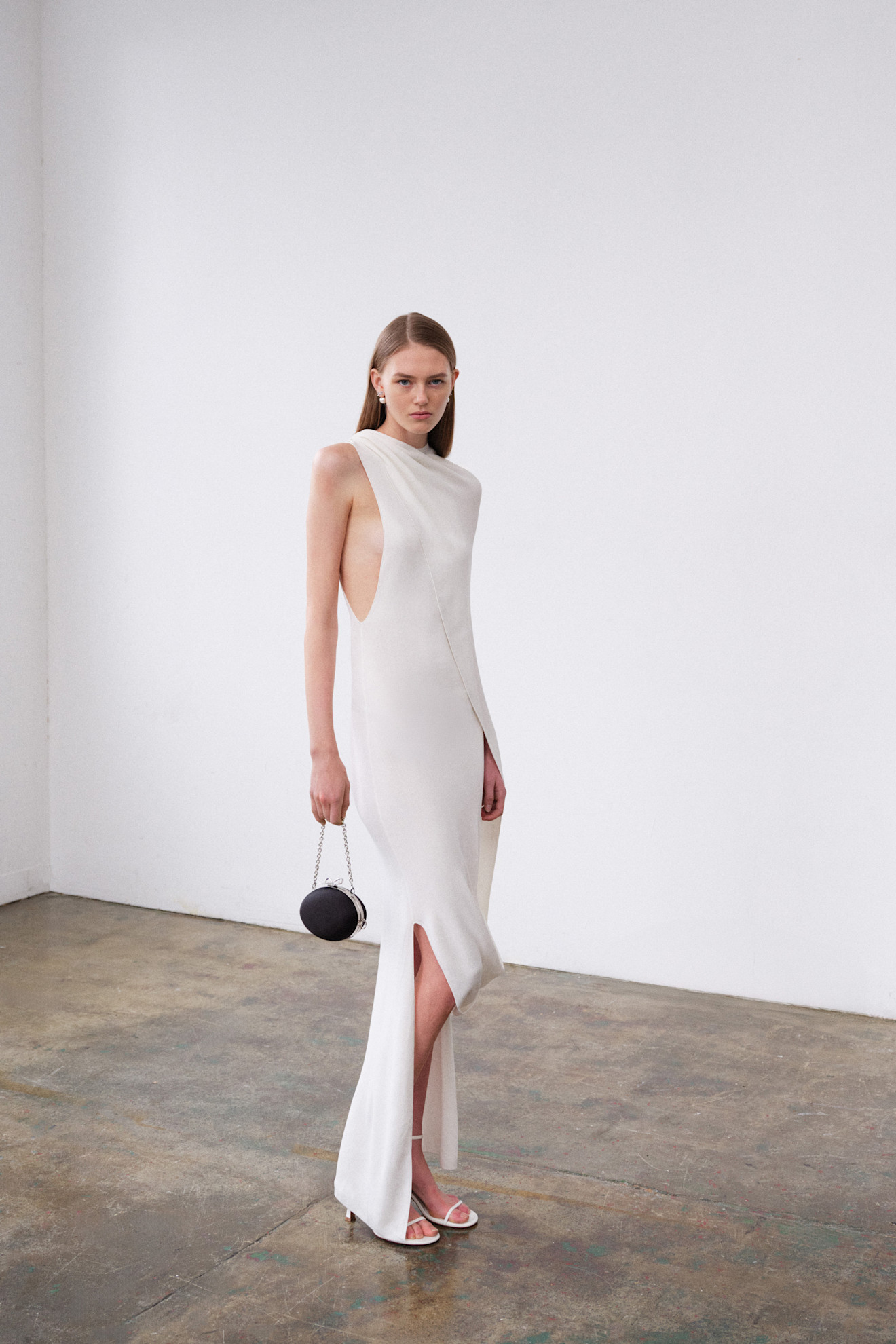 Koleksiyona ilk baktığımızda zarif beyazların domine ettiği tasarımlarla karşılaşıyoruz. Markanın kurucusu ve kreatif direktörü Han Chong, sakinlik kavramını beyaz rengin masumiyet metaforu üzerinden veriyor. Ancak tüm tasarımlarda markanın flörtöz ve oyunbaz tavrı sabit.