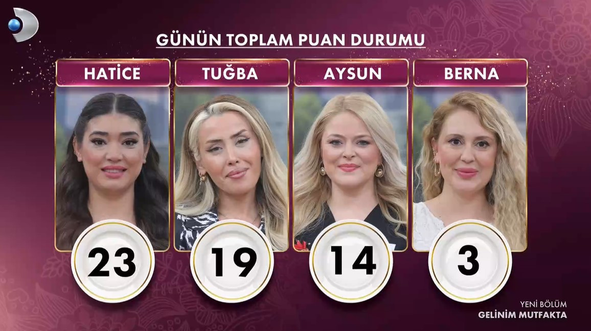 Gelinim Mutfakta 20 Nisan 2026 puan durumu açıklandı. Gelinim Mutfakta bugün günün tanımını en yeterli yapan Tuğba, Hatice, Aysun ve Berna gelinden biri Gelinim Mutfakta günün birincisi oldu ve yarım altını yakasına taktı. Pekala, Gelinim Mutfakta bugün kim 1. oldu, altını kim aldı? İşte, Gelinim Mutfakta puan durumu 20 Nisan 2026