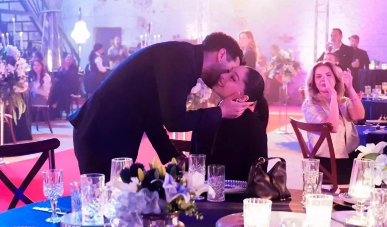 İçinde kopan fırtınaları dışarıya belirli etmek istemeyen Serhat, ödül merasimine eşi Zeynep ile birlikte katıldı.