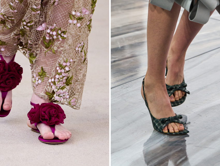 Dior’un püsküllü ve fiyonk detaylı topukluları, Balmain’in deniz kabuğu süslemeleri ya da Proenza Schouler’ın çiçekli aplikeleri, ayakkabıyı başlı başına bir ifade aracına dönüştürüyor. Bu parçalar, sade görünümlere güçlü bir kontrast katmak için ideal.