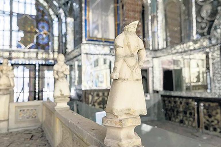 ABD ve İsrail saldırıları sonucu zarar gören UNESCO Dünya Mirası listesindeki Golestan Sarayı’ndaki bir oyma heykel.