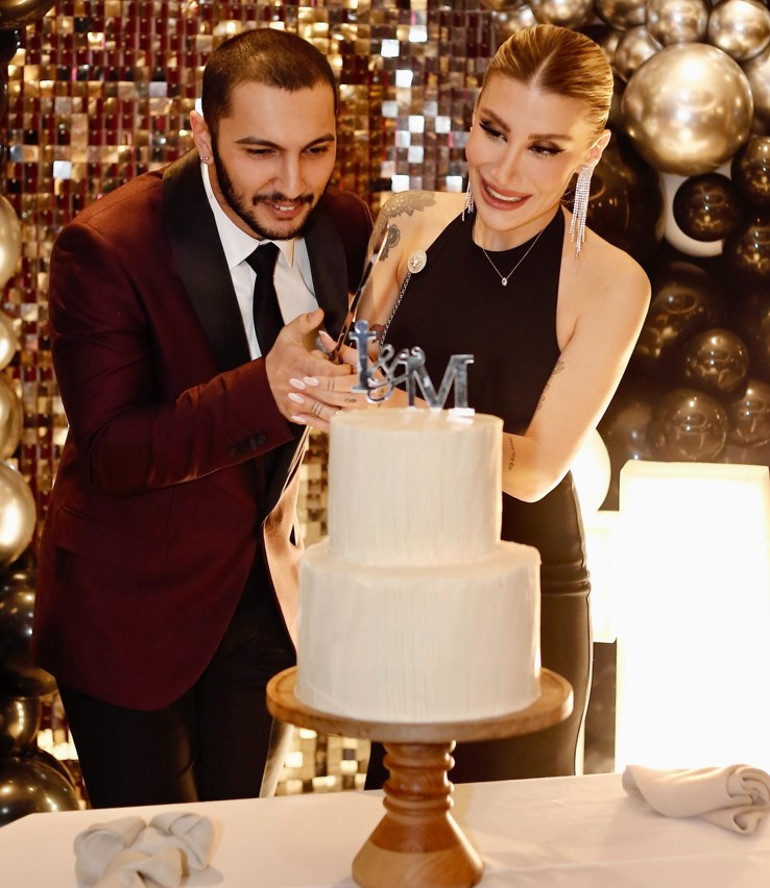Çiftin nişan yüzüklerini İrem Derici’nin menajeri Özgür Aras takarken, kurdeleyi Melih Kunukcu’nun dedesi Hayrullah Akşahin kesti.