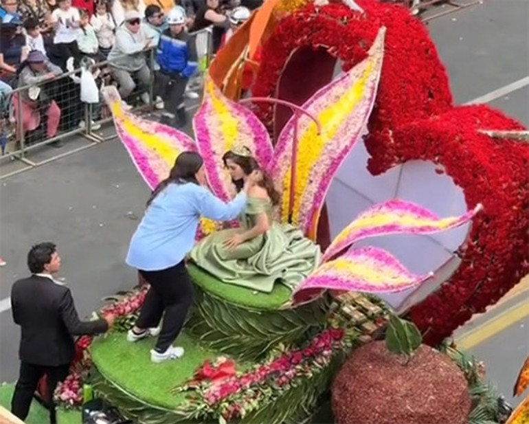 Fatima Bosch geçit sırasında halkı selamlarken bir anda kendini makus hissetti. Evvel gerisindeki aparattan takviye alıp durdu. Lakin sonra bir anda dizlerinin üzerine çöküp kaldı.