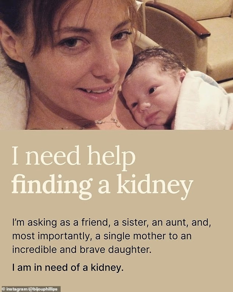 Bijou Phillips hayatı boyunca böbrek hastalığından muzdaripti. Ünlü oyuncu gelişmemiş böbreklerle doğdu ve hayatının birinci üç ayını hudutlu böbrek işleviyle diyalize girerek geçirdi.