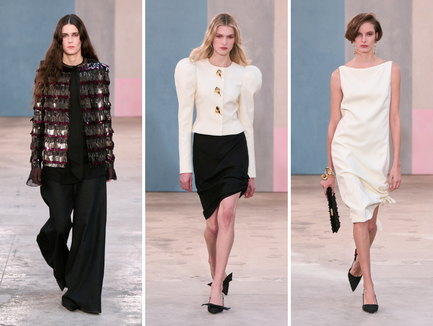 Koleksiyon, Carolina Herrera’nın “polite society” geçmişini tamamen geride bırakmıyor ancak onu daha özgür bir ifadeye doğru genişletiyor. Gordon bu sezon büyük gece elbiselerinden ziyade parti elbiselerine ve bir araya getirilebilecek parçalara odaklandı. Payetli triko takımların kazak rahatlığında olması ya da püsküllü payetli ceketlerin siyah denimle eşleşmesi, akşam giyimine daha günlük bir yaklaşım getirdi. Eliza Douglas’ın podyumda siyah denimle taşıdığı görünüm, bu yeni yönün açık bir örneğiydi.