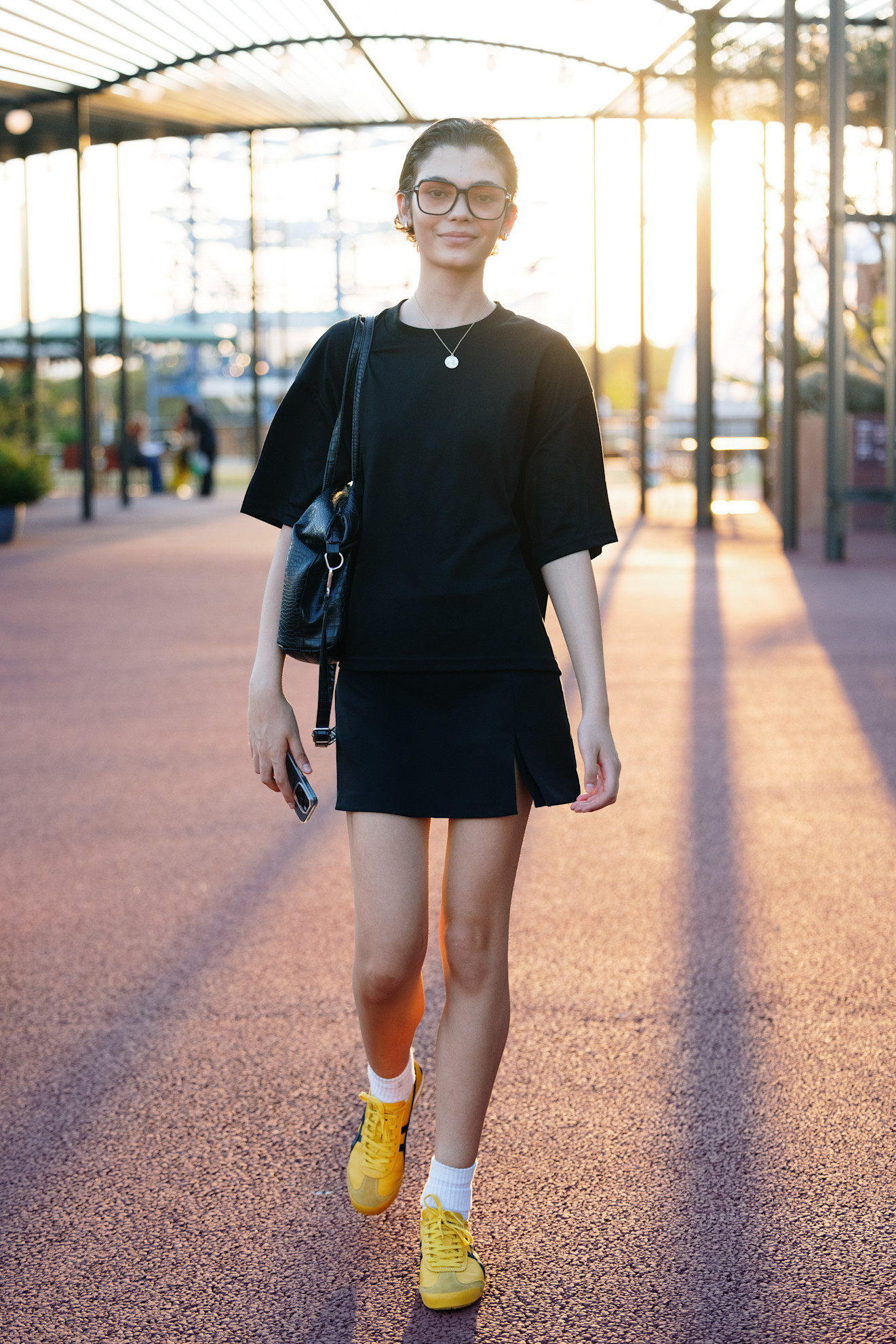 Sezonun en görünür renklerinden biri sarı. Onitsuka Tiger Mexico 66 ile yeniden ivme kazanan bu ton, parlak ama dengeli bir etki yaratıyor. Hardal, pastel ya da daha canlı tonları gri ve siyah pantolonlarla ya da indigo denimle kolayca eşleşiyor. Dikkat çekici ama zorlayıcı olmayan bir kontrast sunuyor.