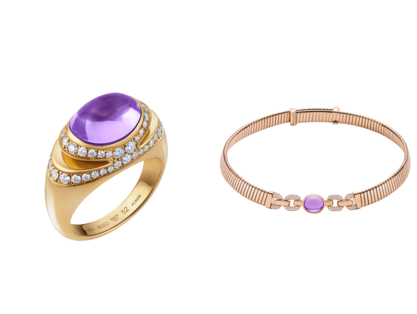 Pomellato için ametist, markanın renkli taşlarla kurduğu samimi ve gündelik lüks anlayışının doğal bir parçası. Üstelik bu yalnızca mücevherle sınırlı değil. Ametist artık saat dünyasında, hatta “haute horology”de bile kendine yer buluyor.