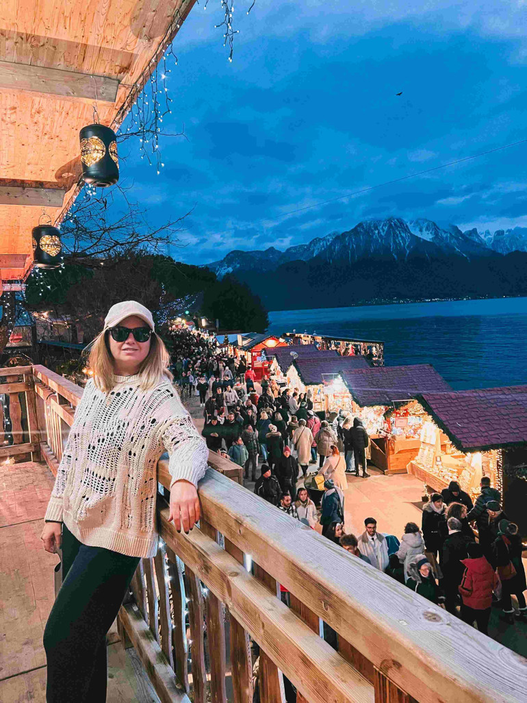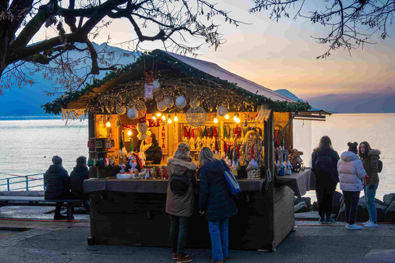 Daha renkli Noel pazarlarına adım atmadan, kent bizi gölün sessizliği ve dağların görüntüsüyle büyülüyor. Montrö’de, başka kentlerde olduğu üzere kentin dört bir yanına dağılmış pazarlar yok. Burada her şey Cenevre Gölü kıyısında, görünümün kalbinde toplanmış. En hoş yanı da bu esasen: Göl kenarında yürüyüş yaparken bir yandan da rengârenk Noel pazarlarını gezebiliyorsunuz. Bu uzun ve ince pazar boyunca, gölün kıyısına dizilmiş 150’nin üzerinde ahşap kulübe var.