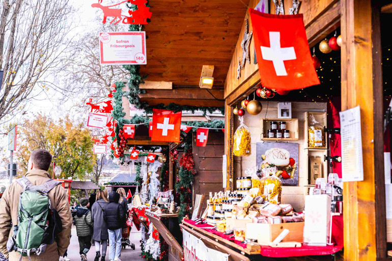 Kalabalık capcanlı lakin asla rahatsız edici değil; herkesin yüzünde tatlı bir heyecan, elinde sıcak şarap ya da bir fincan kakao… Pazarın farklı noktalarında dönmedolap, barlar, restoranlar ve küçük aktiflik alanları da var. Stantlar itinayla hazırlanmış süslemeler, şık el işleri, şekerlemeler, peynir fondü ve mis üzere kokan sıcak şaraplarla dolu. Her köşeden başka bir tat, farklı bir koku yükseliyor. Benim favorim baget ekmeğine eritilen peynir fondü oluyor. Her lokması sıcacık bir İsviçre klasiği.
